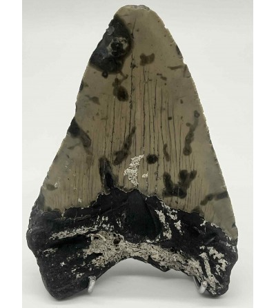 Cette dent fossile de mégalodon (Otodus megalodon) provient des gisements des États-Unis, réputés pour produire des spécimens recherchés par les collectionneurs.