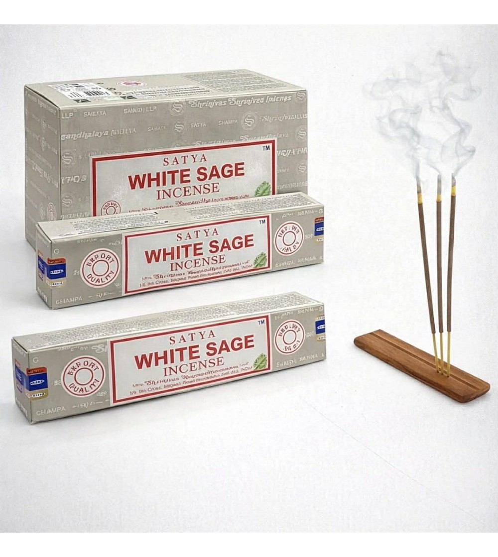 Boîte d’encens Sauge Blanche naturelle, appréciée pour la purification des espaces, la relaxation et les rituels énergétiques.
